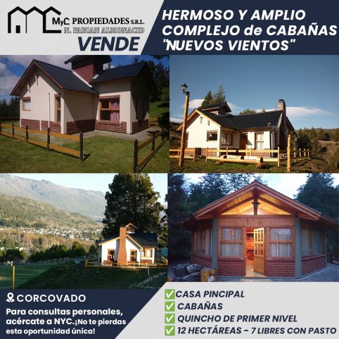 ¿Estás buscando un lugar increíble para desconectarte y disfrutar de la naturaleza? Estudio FLAMIG tiene la solución perfecta para vos. ¡Estamos vendiendo un hermoso complejo de cabañas llamado "Nuevos Vientos" en Corcovado! Casa principal