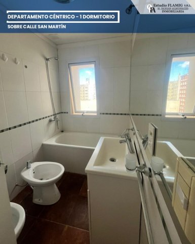 ALQUILER CENTRO COMODORO Estudio FLAMIG alquila departamento céntrico sobre calle San Martín, dentro de la Galería San Martín. Living-comedor Cocina integrada 1 habitación Baño completo