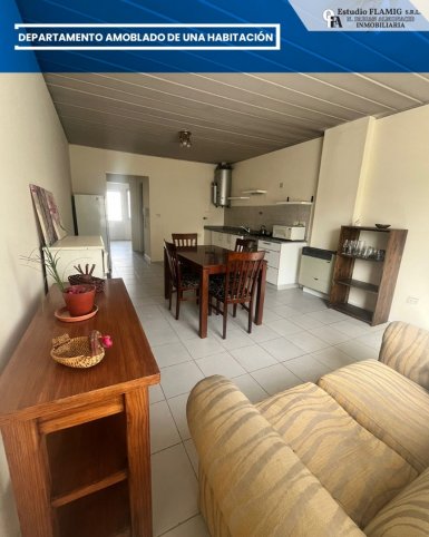 DEPARTAMENTO EN ALQUILER Zona Centro - Loma | ¡Totalmente amoblado! Cómodo y moderno departamento: Estar Cocina comedor Baño completo 1 habitación Balcón Terraza Listo para mudarse Valor: $750.000 Ideal para quienes buscan conf