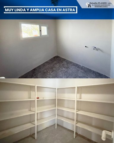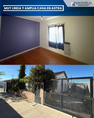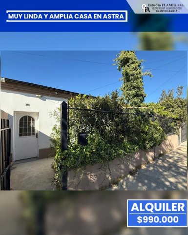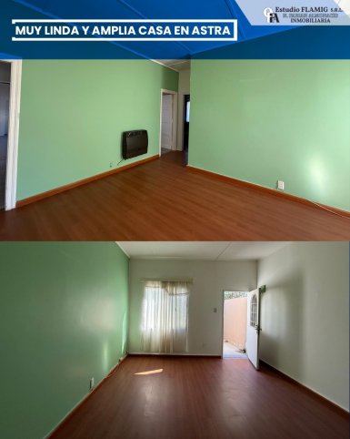 Estudio FLAMIG ALQUILA Muy linda y amplia casa en Astra Impecable estar, gran cocina comedor y dos habitaciones. Terreno de calle a calle. Valor: $990.000 Coordiná tu visita con nosotros y conocé tu próxima casa.