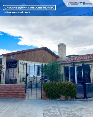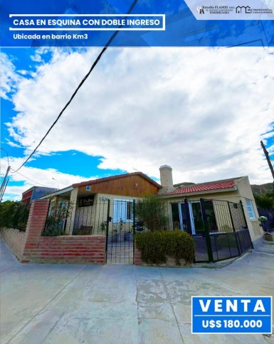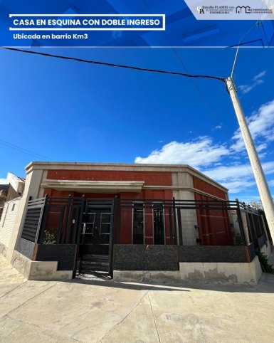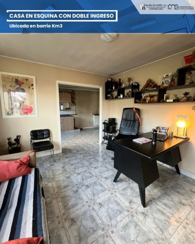 Propiedad en venta en Km 3, ubicada en esquina con doble ingreso, ideal para quienes buscan amplitud, comodidad y una excelente ubicación. Cuenta con ambientes amplios y luminosos, cocina comedor integrada, living, tres baños y vestidor