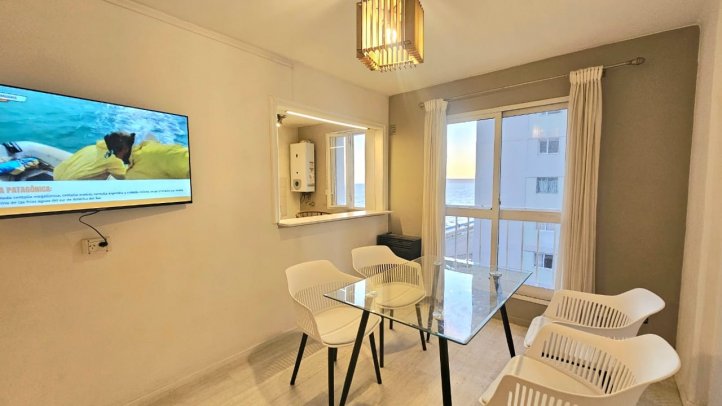 ALQUILER TEMPORARIO MENSUAL: Departamento de 1 dormitorio. Totalmente amueblado frente al mar todos los ambientes amplios y luminosos. Zona céntrica, cercana a centros de salud, ruta 3. Estacionamiento libre