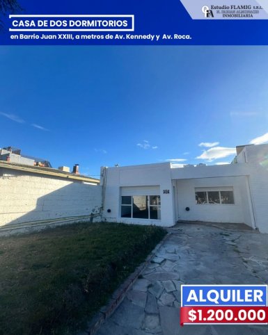 ESTUDIO FLAMIG ALQUILA CASA en Barrio Juan XXIII, a metros de Av. Kennedy y Roca. Espacios amplios y cómodos: Living Cocina 2 Dormitorios Entrada para vehículo Patio delantero y trasero