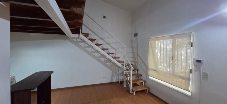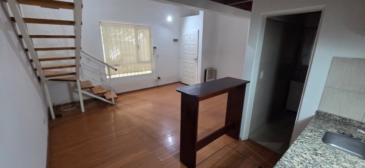 El departamento consta de una cocina -comedor y baño en plata baja muy cómodos y completo y en plata alta un dormitorio. En el patio cuenta con una fogón parrilla que se comparte con el departamento pegado a este y una par de lindos árboles. Apuntamos a persona sola o pareja sin mascota y sin hijos para que puedan estar cómodos. Esta unidad no es amueblada y muy importante "no paga expensas"
